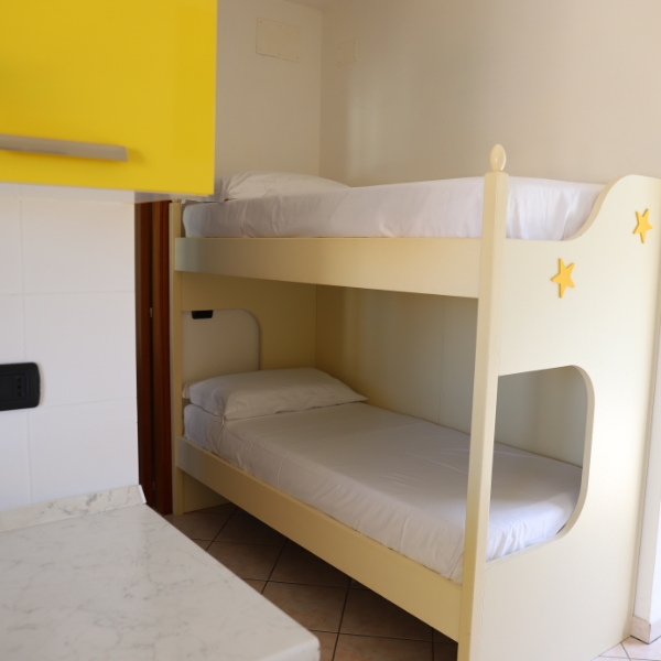 Tipologia letto: Matrimoniale + letto a castello (zona giorno)
